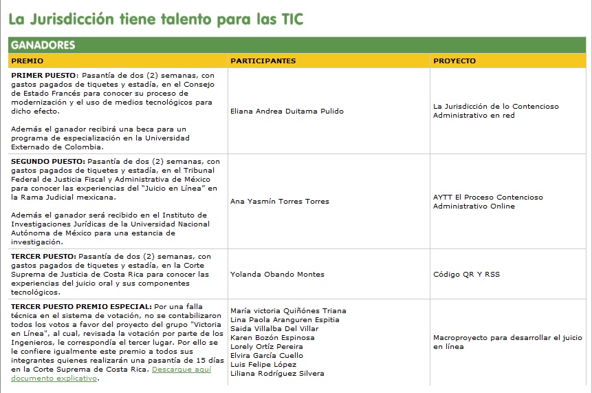 Concurso 1. En este enlace puede consultar la Convocatoria del concurso 2. Nueva Circular 3. Carta de Premiacion Oficial publicada en la pagina del Consejo GANAMOS EL PRIMER PUESTO CON 6.21 PUNTOS. CONSULTE AQUI EL COMUNICADO OFICIAL. Ganadores Jurados: